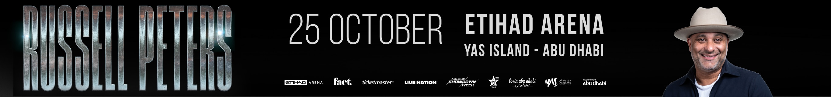 Global comedy icon Russell Peters returns to Abu Dhabi for one night only, bringing his world famous stand up to Etihad Arena, Yas Island on Sunday, 25 October.
